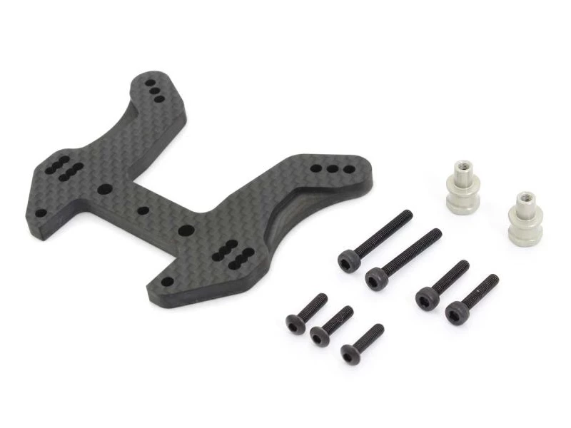 Short Carbon front shock tower for the MP9/10 / 10 TKI2 / 10e. Increases steering response especially in continuous corner sections.