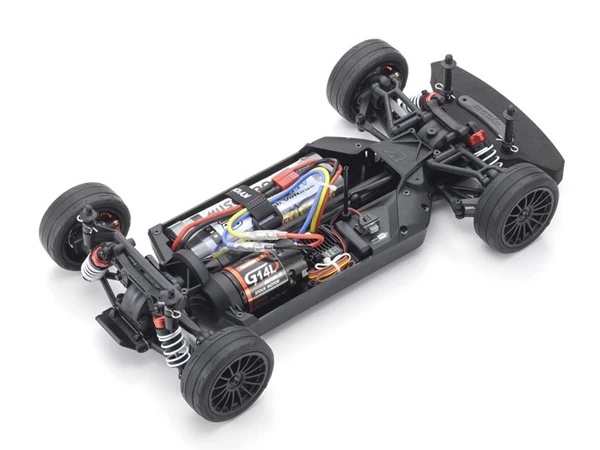 For the pure enjoyment of R/C car driving, the combination of a beautifully reproduced car body with the FAZER series chassis can’t be beaten. Kyosho has taken its standard touring car chassis and given it a full model makeover that has evolved performance to a new level. A simplified design with fewer parts has improved maintenance efficiency and reduced weight while core strength and rigidity has been increased through new materials and ribbing and stiffeners on front and rear. In addition, the symmetrical chassis design synergizes excellent front-rear balance through the suspension with responsive control, irrespective of power source. Featuring slipper clutch, front & rear gear differentials, oil shocks and full ball bearing specs, the high durability and impact resistance allows drivers to unleash the full potential of the chassis. Brake disc wheel hubs with two different offsets (0mm, +5mm) provide compatibility with 190mm and 200mm width body styles and allows the wheelbase to be adjusted to 274mm by replacing some parts (sold separately) for compatibility with other 1/10 scale body styles, in addition the body included. The Readyset package comes fully assembled and includes everything except charger and battery for the chassis, and batteries for the transmitter.