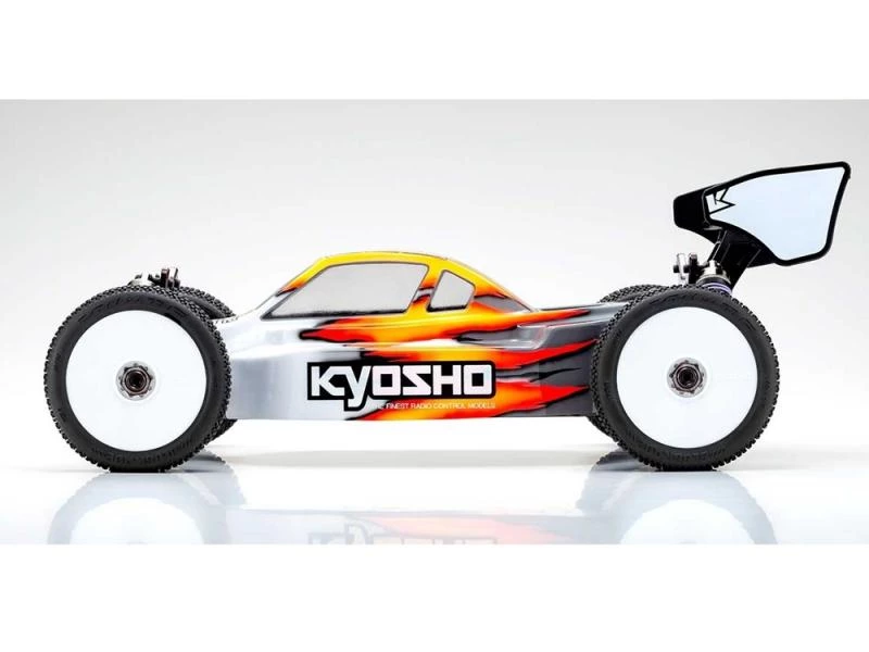 With eight titles at the IFMAR (International Federation of Model Auto Racing) 1/8 scale engine racing buggy World Championships, the Inferno series boasts an unrivaled record of success. Based on the most advanced MP10 model, an electric power unit has transformed this machine to create the new MP10e! Evolution of electric motor and battery technology has delivered speed comparable with engine (GP) models so 1/8 electric racing buggies have become a competition class around the world. The quiet simplicity of electric power opens up more opportunity to enjoy high-performance 1/8 buggy performance. As various manufacturers adapted 1/8 models for competition, Kyosho optimized the weight distribution to enhance the MP10e far beyond the performance of the MP9e Evo. Boasting the performance and reliability of the MP10’s proven suspension and drive system, the MP10e features a specially designed main chassis that provides optimal chassis flex and sure-footed grip with an aerodynamic body designed for this electric model to deliver easy handling at high-speed. The motor mount is compatible with various size motors and supports the left-right distribution of the battery weight. Specially designed receiver box and ESC mount deliver improved maintenance efficiency. For the sharpest racing edge, the enhanced performance of the MP10e will be your first choice in a racing weapon.