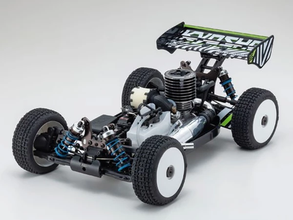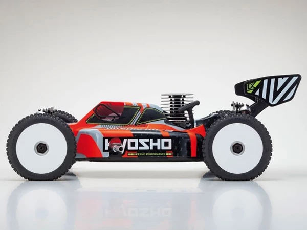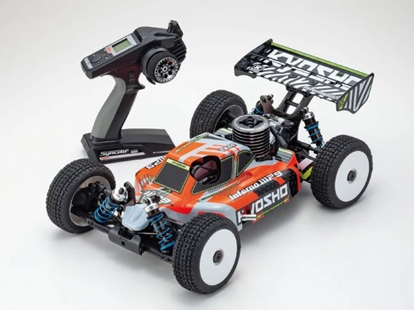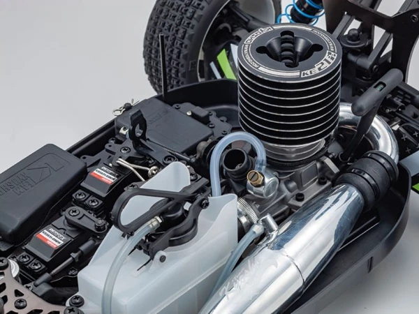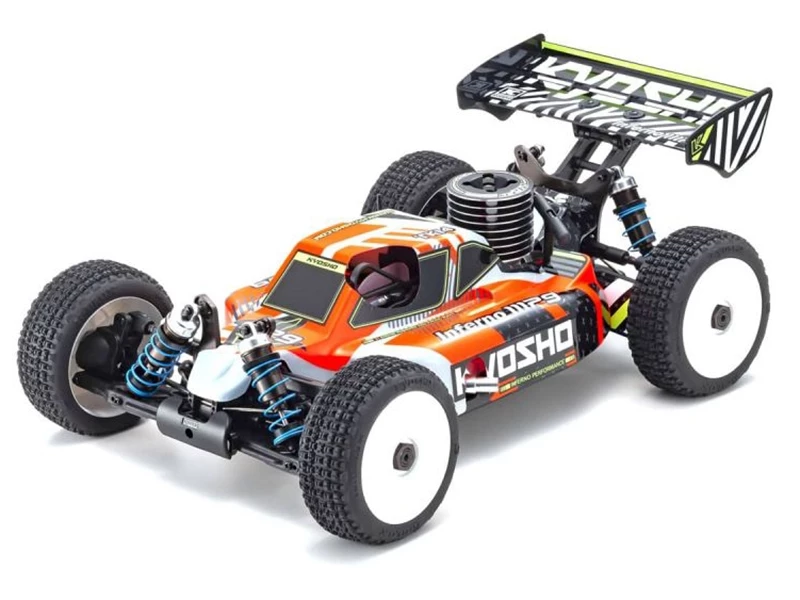 With 8 world championship titles, the Inferno has set the standard as the most powerful 1/8 scale engine racing buggy of all time. The DNA of the competition-level MP9 TKI4 model and its advanced racing technology is embodied in this Readyset. The MP9 TKI4’s signature long front sus arms and 17.5°caster angle front hub carriers realize superior cornering stability and sharp control while the adoption of a forward cabin type body increases downforce, using the Inferno’s aerodynamic performance advantage to deliver balanced cornering and optimal traction. Including the user-friendly and high torque KE21SP engine fitted with recoil starter and rear existing exhaust, anyone wishing to challenge the peak of 1/8 engine buggy performance can find the perfect racing partner in this MP9 TKI4.